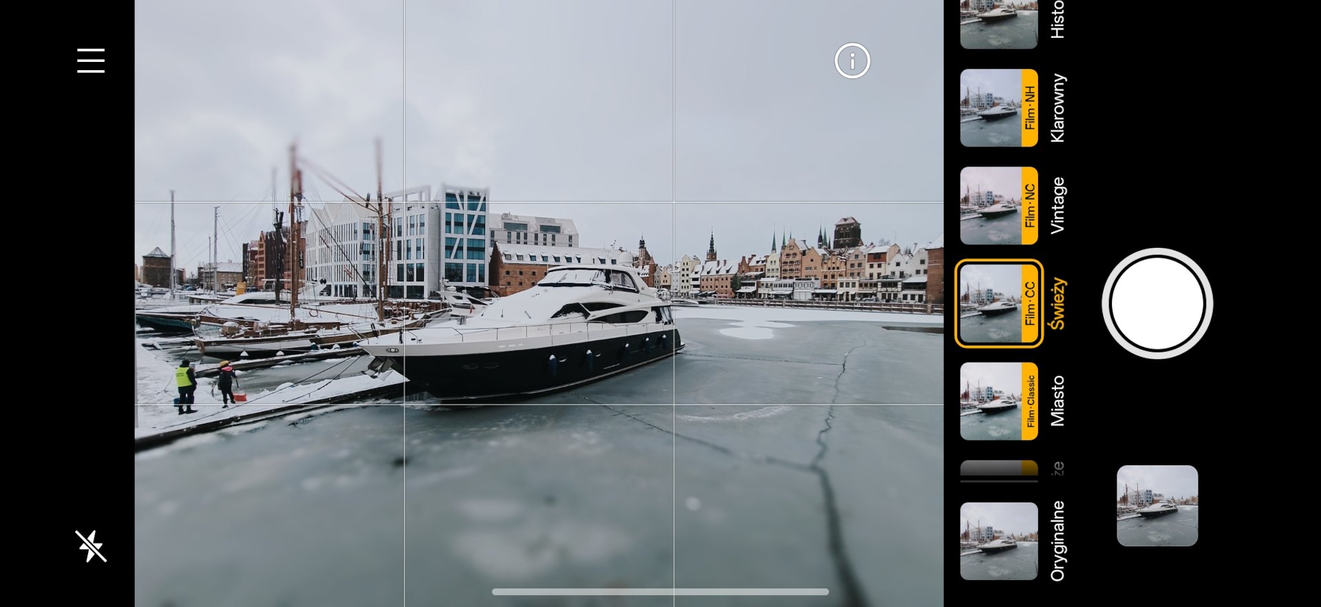 Zakładka odpowiedzialna za cyfrowe filtry pozwala na fotografowanie z presetami zmieniającymi kolorystykę.