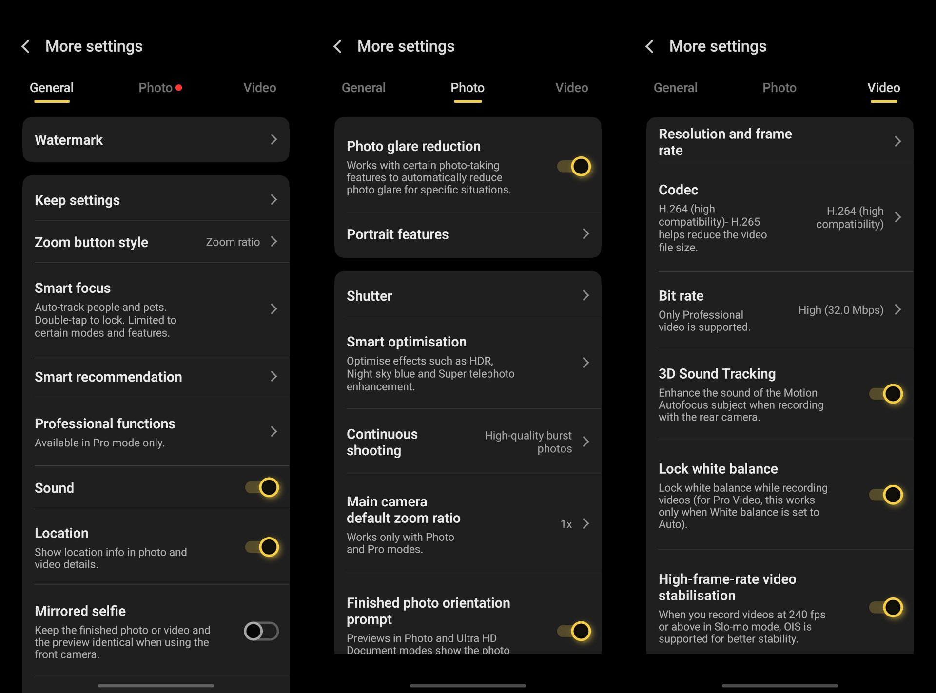 Model posiada tryb Pro do fotografowania i filmowania z ręcznymi ustawieniami: